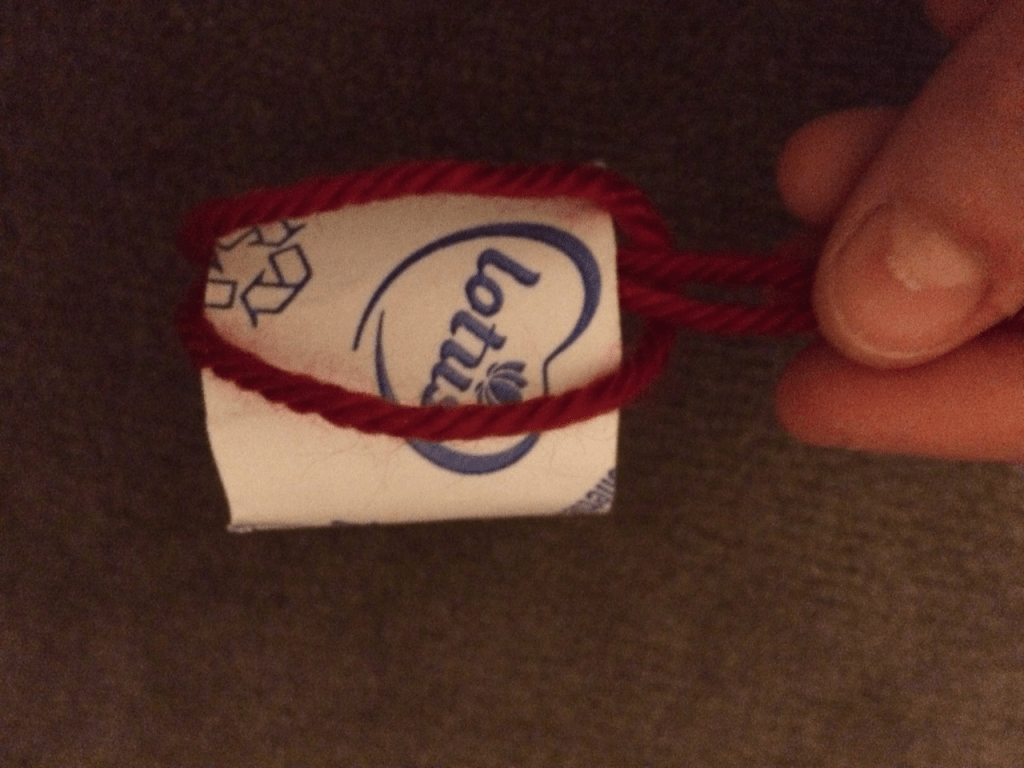 5️⃣ Prenez un de vos fil de laine et passez le à travers le morceaux de papier toilette: